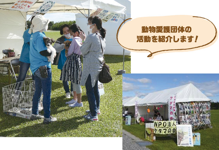 動物愛護団体の活動紹介として団体が飼養管理している犬猫の紹介、パンフレット等の配布。