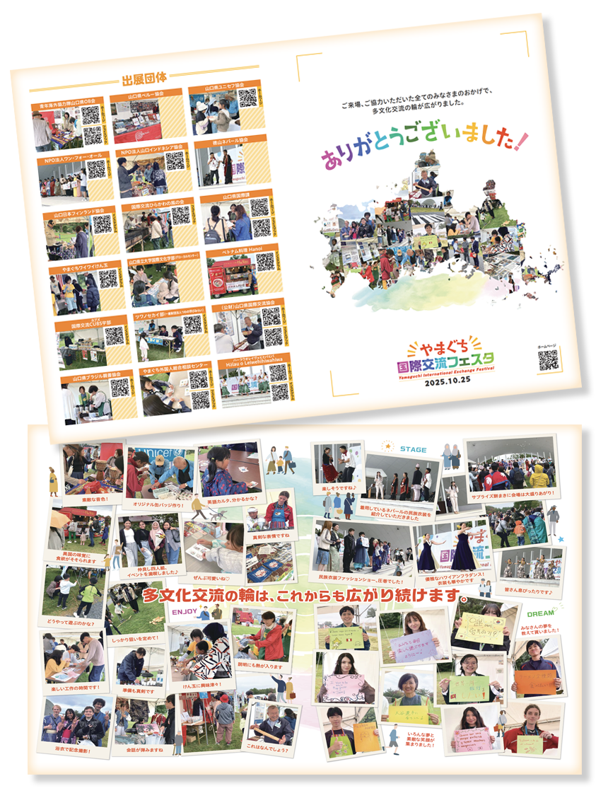 「やまぐち国際交流フェスタ」は、子どもから大人まで、世代を超えて、日本人と外国人が一緒に楽しみ、互いを知り、つながる交流イベントとして開催しました。